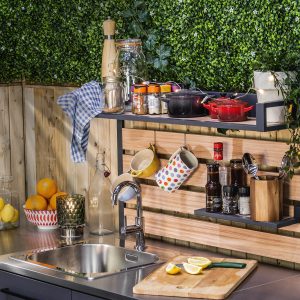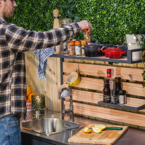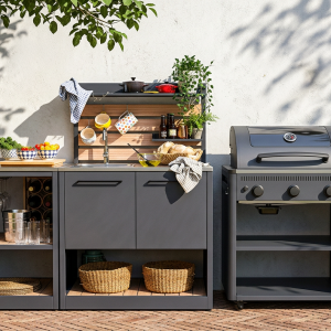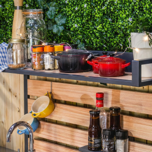 Estante elegante con efecto madera para cocina exterior Sahara.
